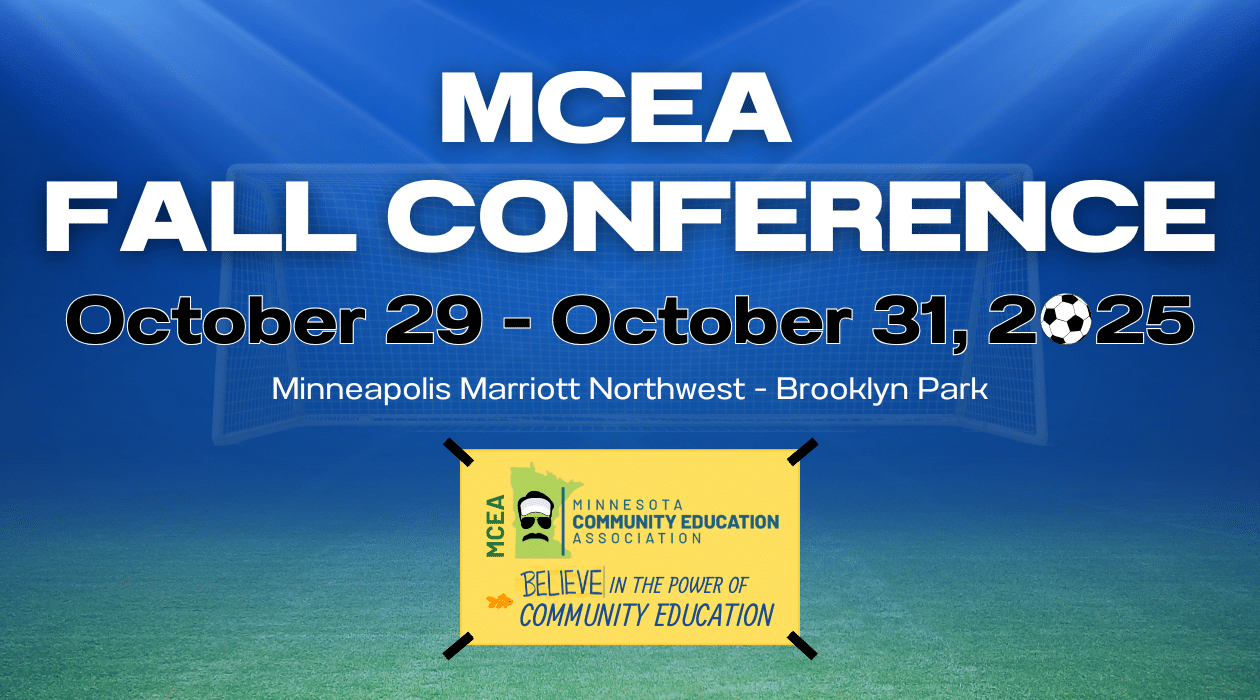 October 29–31, 2025 | Minneapolis Marriott Northwest Believe in the Power of Community Education Join us for MCEA’s biggest event of the year — a dynamic three-day experience packed with inspiration, professional growth, networking, and the energy of a movement that believes in the impact of community education. This year’s theme, inspired by Ted Lasso’s […]