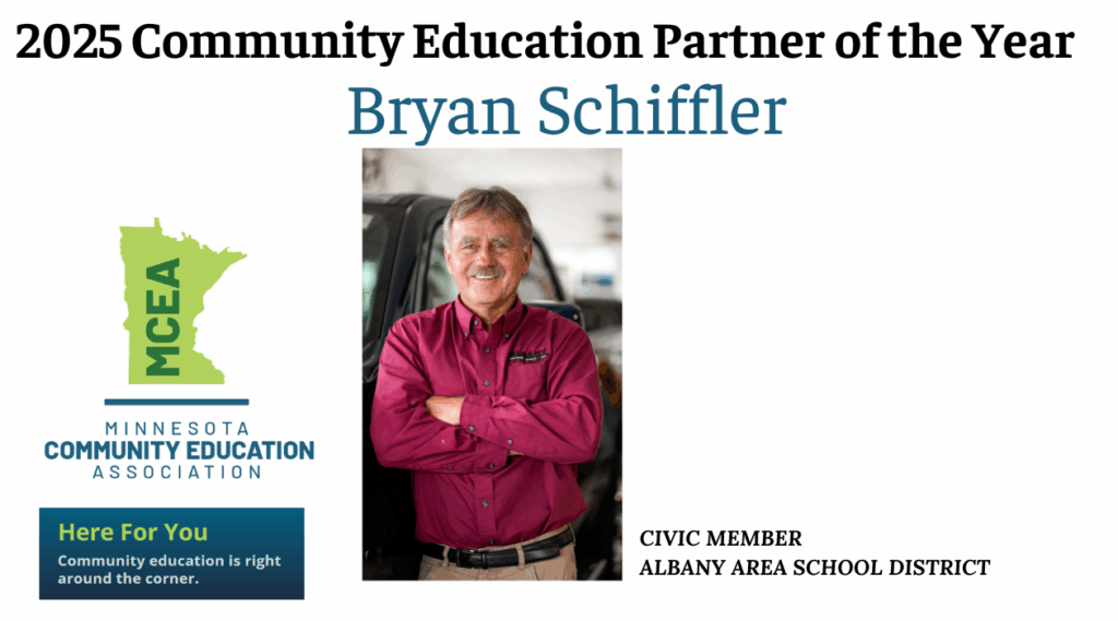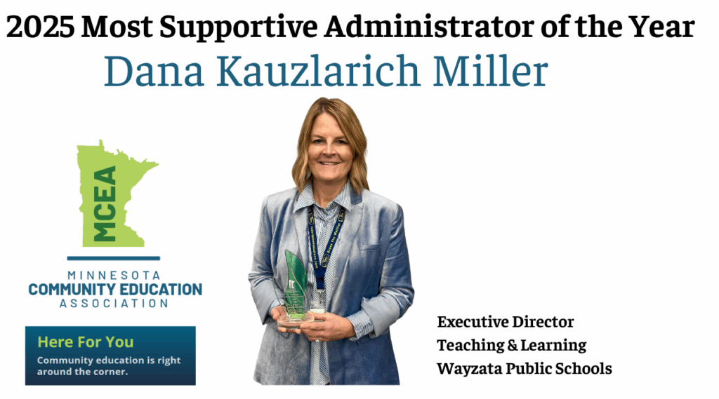The MCEA Lifetime Achievement Award is presented to an individual with 20+ years of leadership in the field of Community Education who has made exemplary contributions to advance the goals and principles of Community Education locally and throughout Minnesota.
