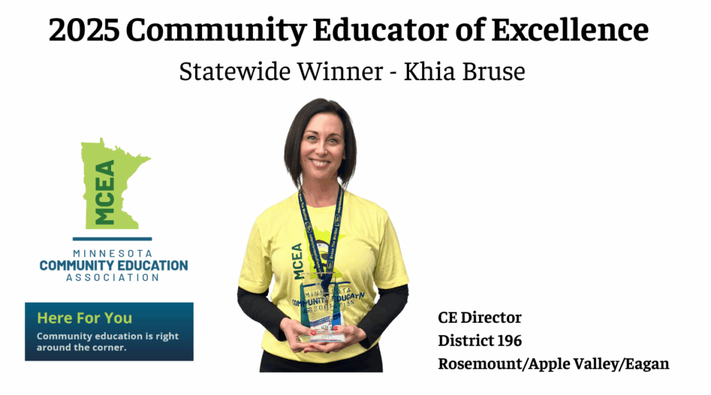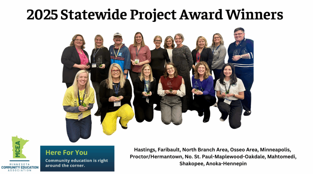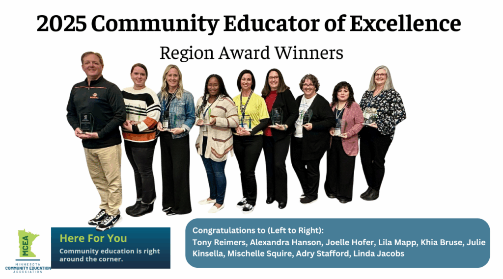 MCEA recognizes, thanks and celebrates the outstanding contributions made by practitioners and supporters of community education from across Minnesota. Nominees represent the best of the best: persons committed to working together, creating opportunities, persisting through challenges and partnering with others.
